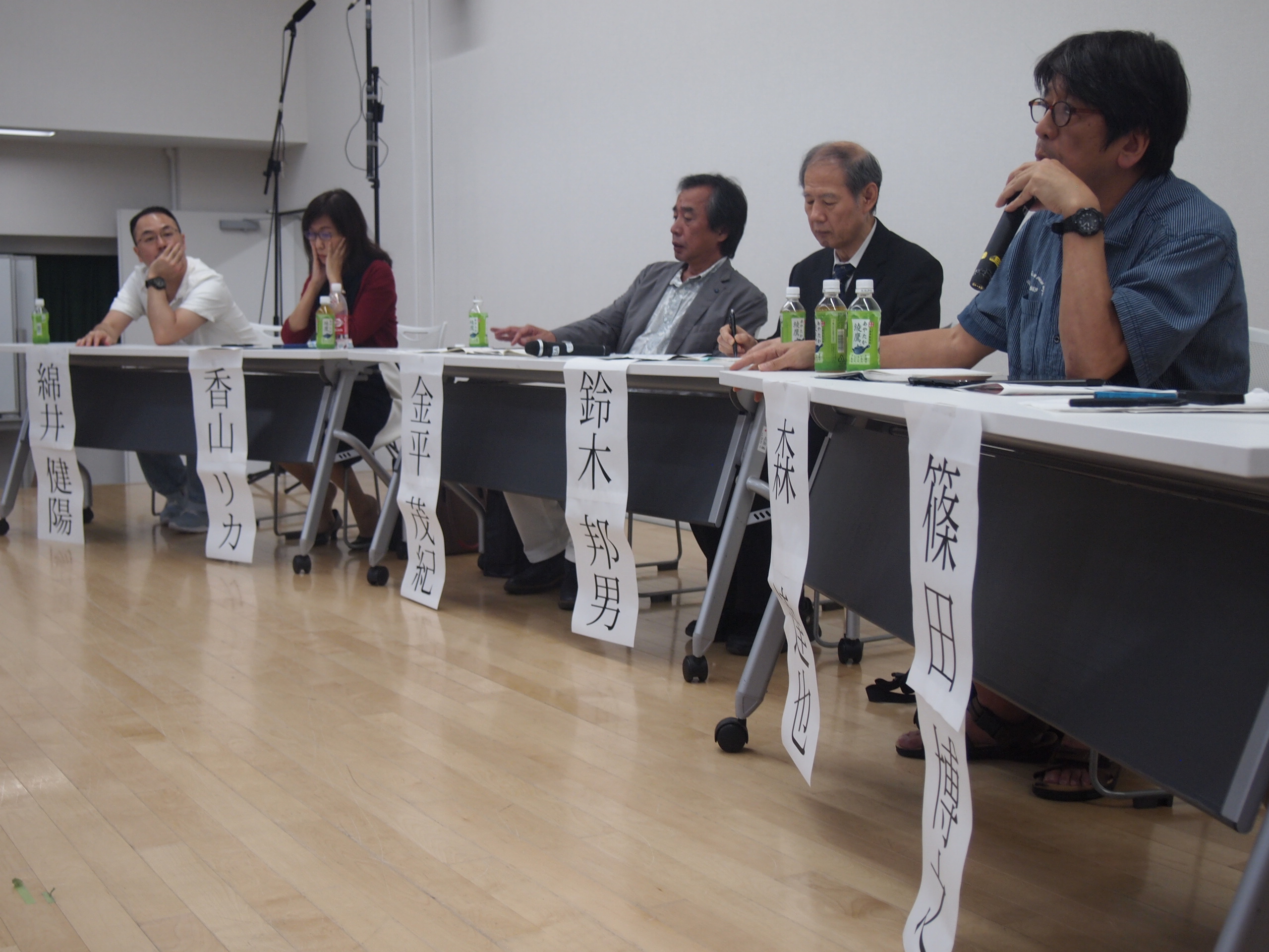 出展当事者や関係者たちの発言を受けて、第2部では、金平茂紀さん(TVジャーナリスト)、森達也さん(作家・監督)。鈴木邦男さん(元一水会顧問)、香山リカさん(精神科医)、綿井健陽さん(ジャーナリスト・監督)らが、表現をめぐるこの現状をどう捉え、私たちはどうすべきか発言した。